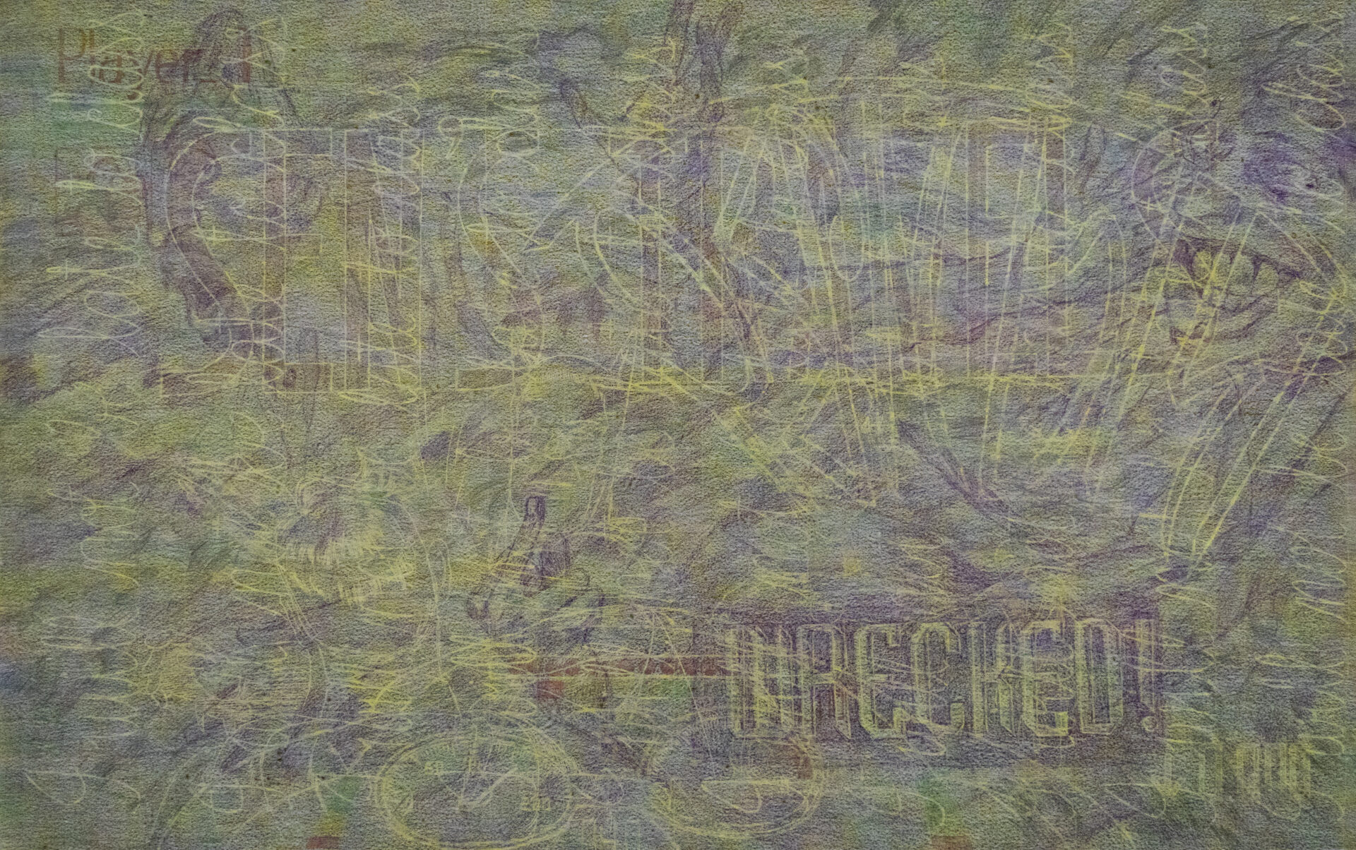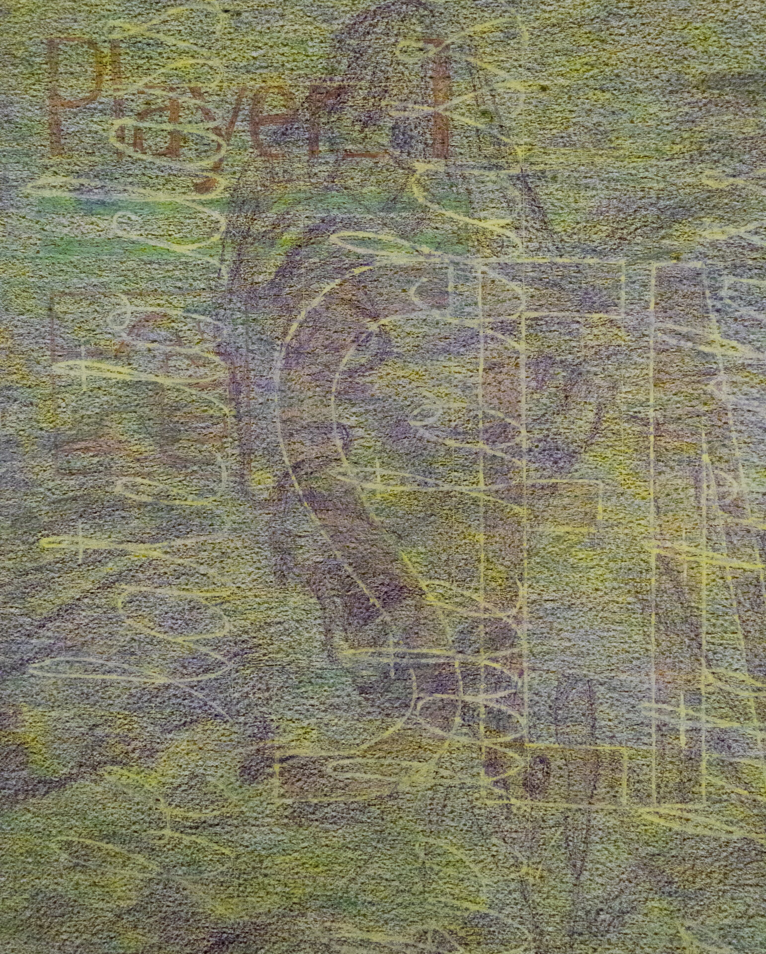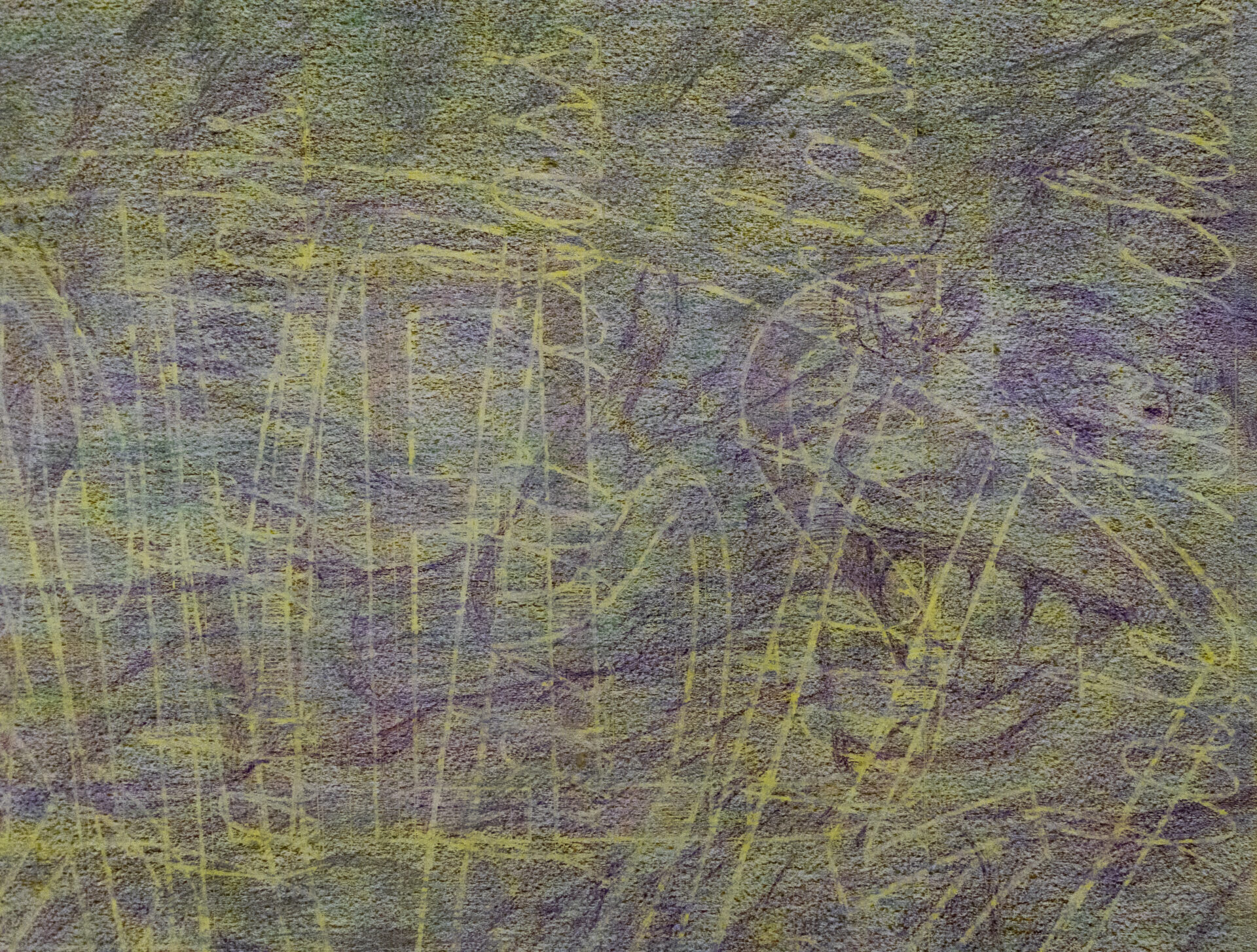 Crayons, graphite and color pencil on paper.