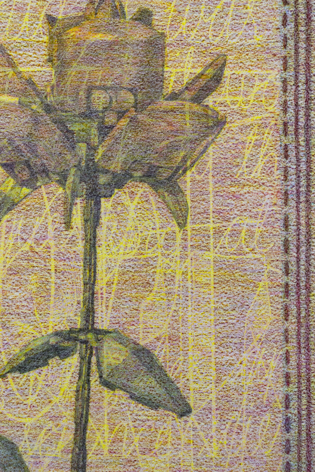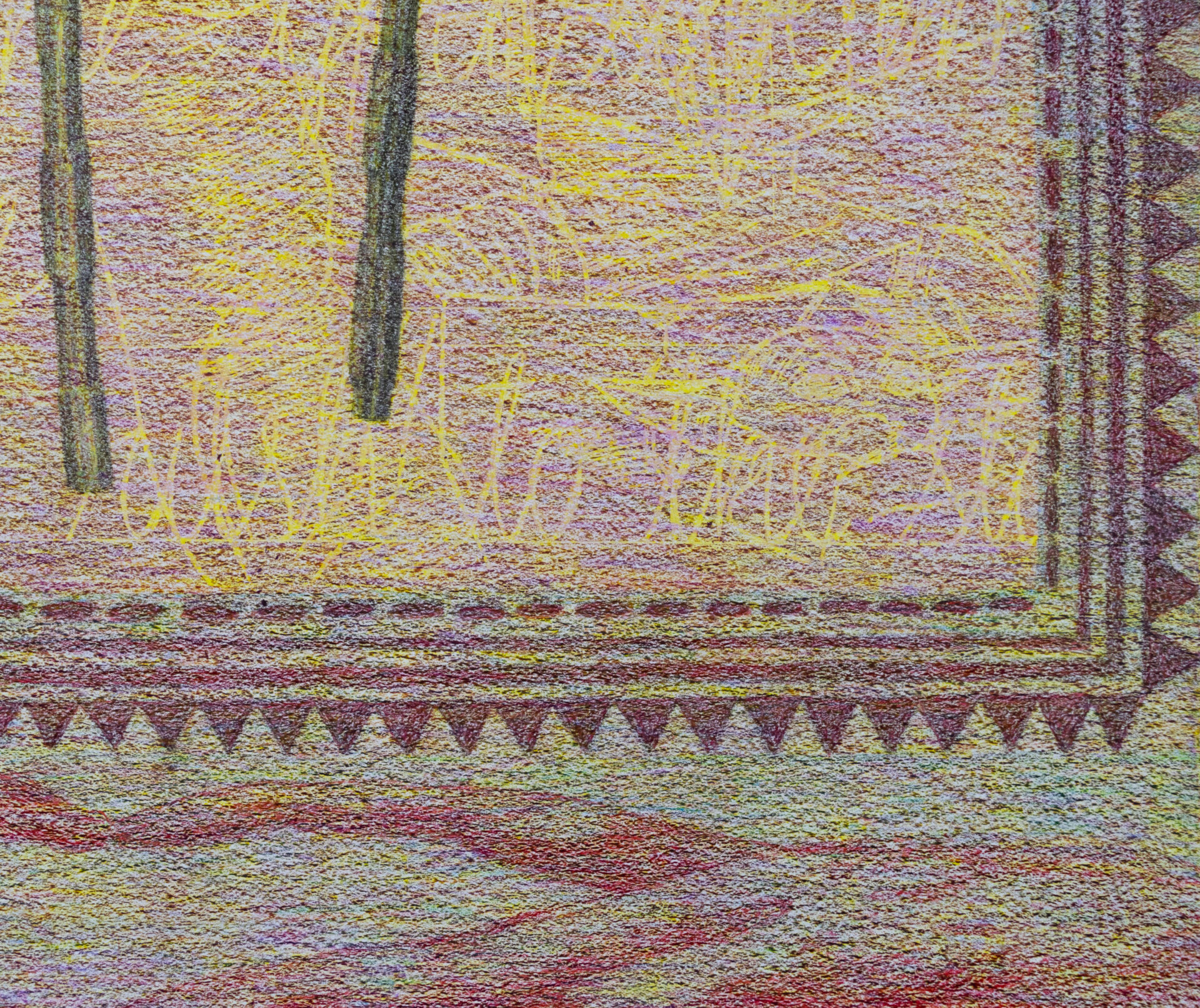 Crayons, color pencils and graphite on paper.